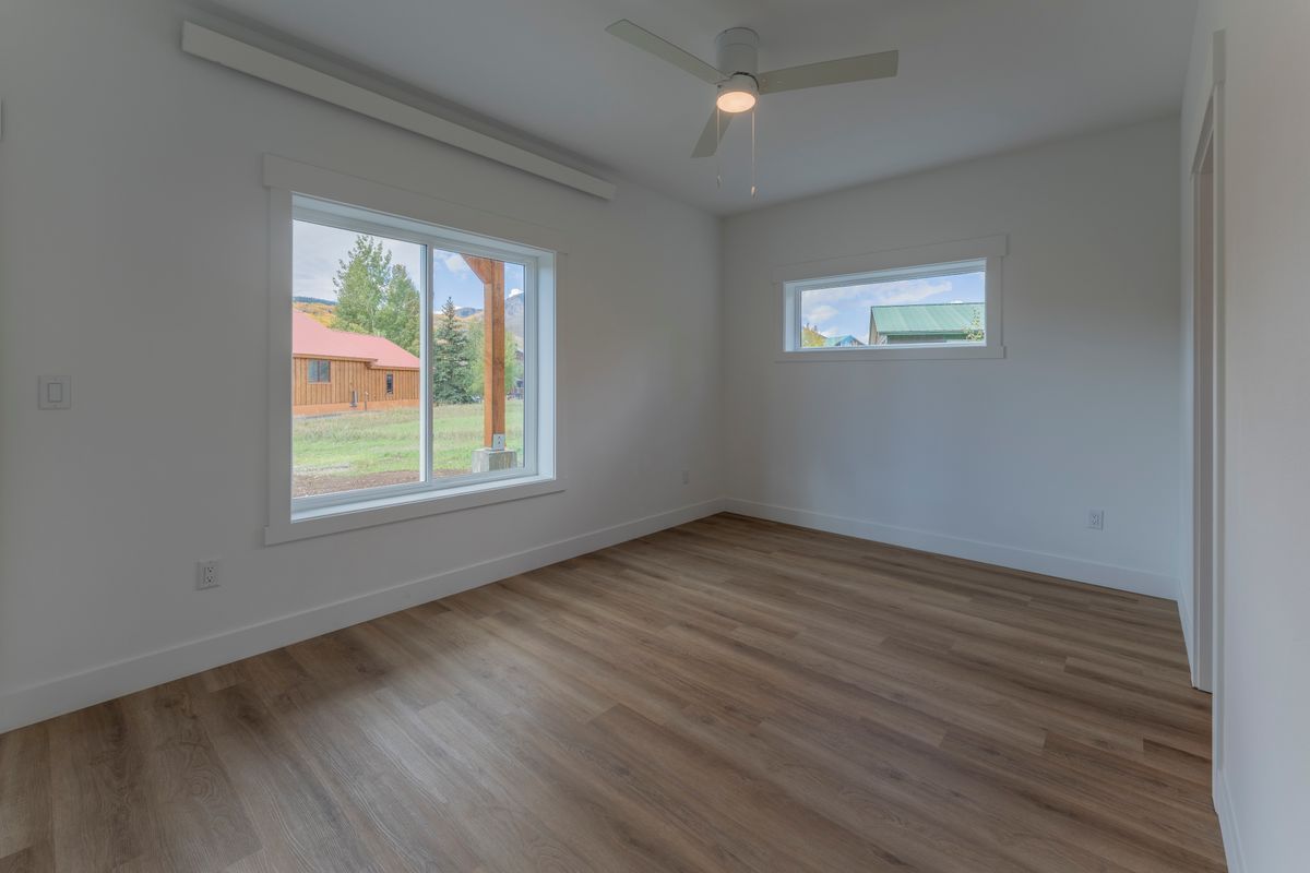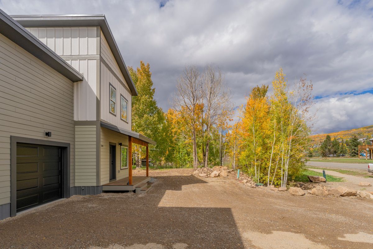 Built and ready to move in! Modern duplex with versatile living and prime location. Discover this beautifully crafted 3-bedroom, 2 1/2 bathroom townhome offering a flexible layout, custom built closets throughout, and thoughtful design. A bonus room provides additional versatility—perfect as a fourth bedroom, home office, or media room to suit your lifestyle. Constructed in a controlled environment by Fading West Builders, these homes deliver consistent, high-quality craftsmanship that blends durability, comfort, and clean mountain modern style. The open-concept main level welcomes you with abundant natural light, a spacious kitchen featuring stainless steel appliances, and a comfortable living area that opens to a covered patio. The primary suite is conveniently located on this floor, complete with an ensuite bathroom and a generous walk-in closet. Enjoy effortless outdoor living with multiple covered spaces, including an upstairs private balcony and a covered patio off the living area. A one-car attached garage offers secure storage for your vehicle and gear. Located just two blocks from the Crested Butte South commercial district and situated directly on the community walking path, this home offers exceptional convenience. Residents enjoy access to CB South amenities such as East River fishing, tennis courts, playgrounds, and more.