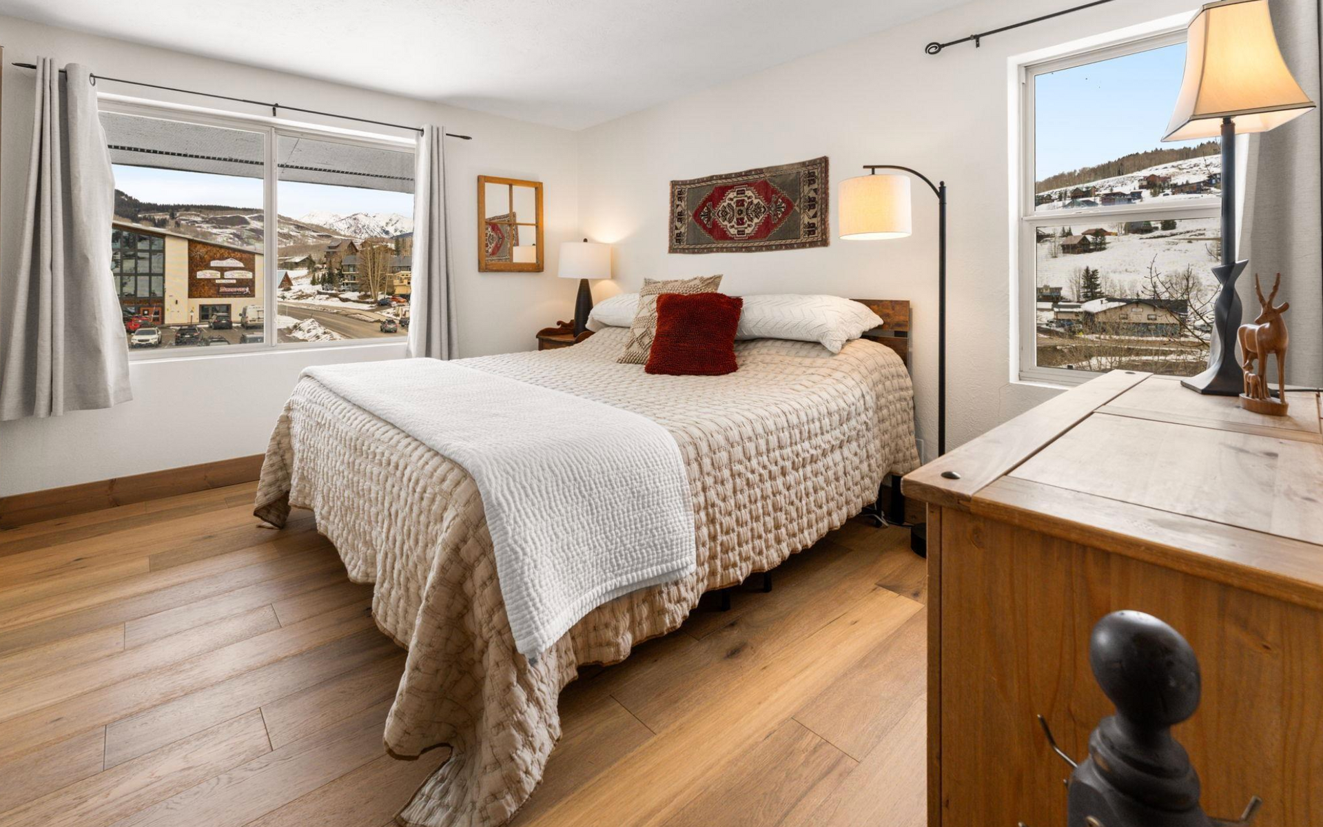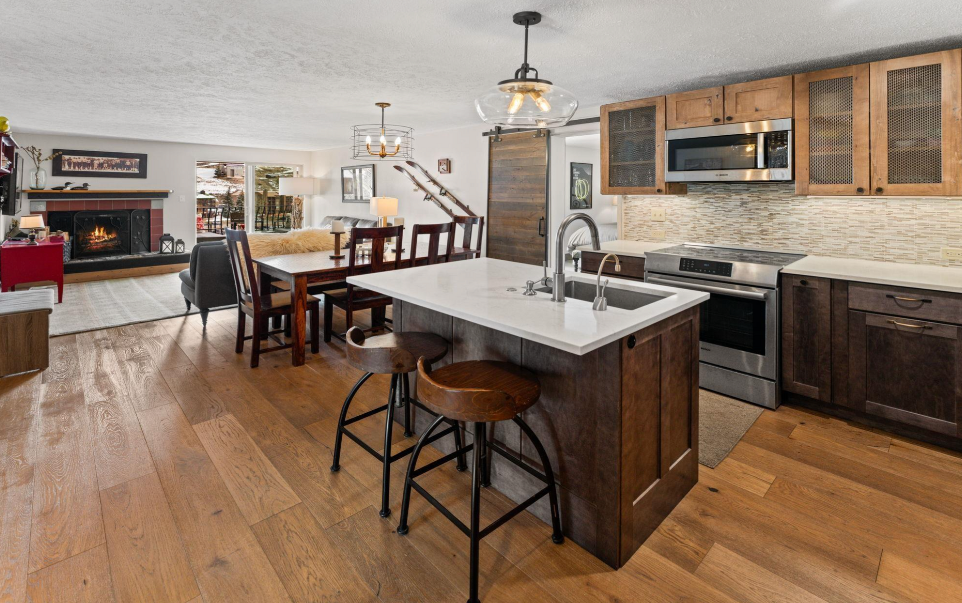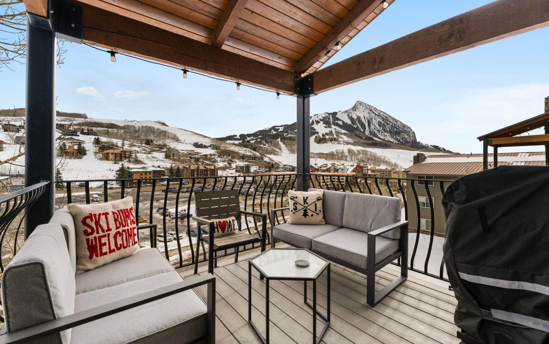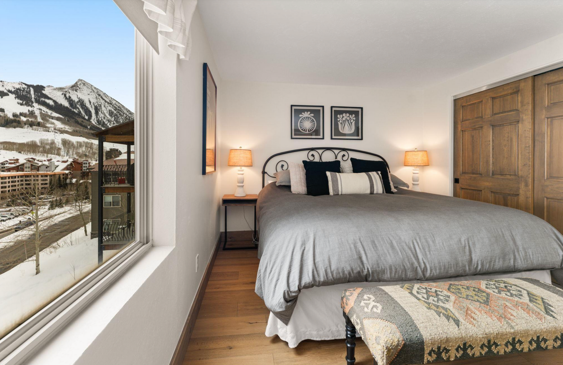 The premier three-bedroom residence at The Chateaux, Unit 409 is an end unit, top-floor "penthouse" sanctuary with no shared walls, offering rare privacy and breathtaking, unobstructed views of Mt. Crested Butte and West Maroon Pass. Recently reimagined and professionally redesigned by Studio W, this mountain-modern masterpiece features high-quality engineered hardwood floors, real alder wood interior doors and trim, and a chef’s kitchen equipped with a suite of Bosch appliances—including a smart, built-in espresso/latte system you can program from your phone. Your latte could be waiting for you when you get out of bed! The living area centers around a cozy wood-burning fireplace with an updated hearth and firewood (included with HOA), while the redesigned floor plan maximizes space. The unit boasts a new water heater and updated electrical throughout. Beyond the front door, the complex shines under new property management, offering a freshly updated gym, a rentable clubhouse for events, and a poolside BBQ area with a massive hot tub for the ultimate apres-ski experience. Convenience is unmatched with dedicated ski and bike storage, private lockers in the clubhouse, and a shuttle bus stop right in the parking lot for effortless access to the base area and town. Complete with designer furnishings and a full-size Bosch washer/dryer, this unit is a premier turn-key mountain retreat or high-performing rental investment.