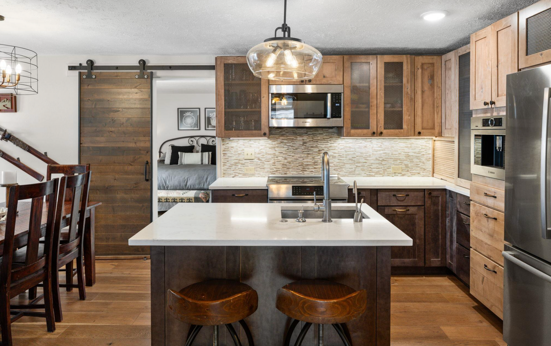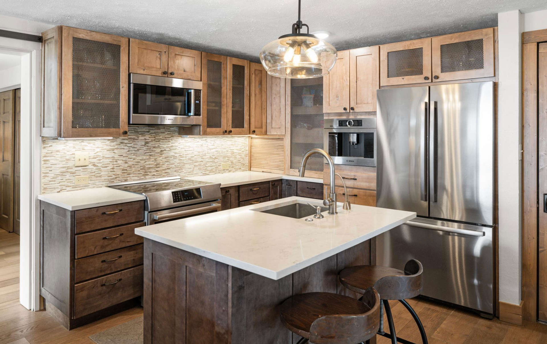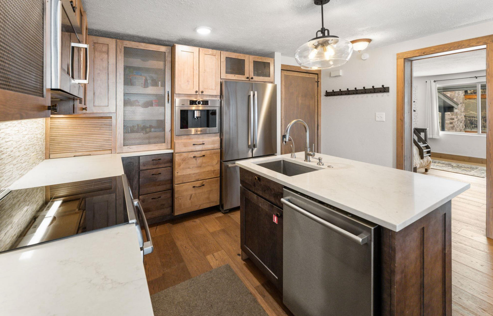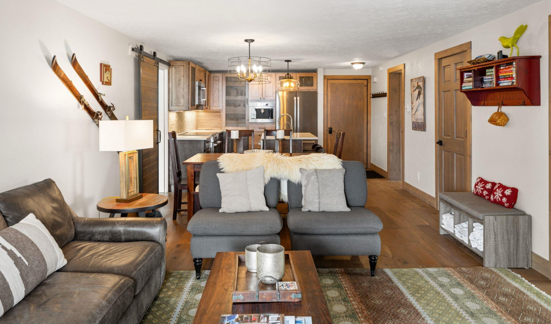 The premier three-bedroom residence at The Chateaux, Unit 409 is an end unit, top-floor "penthouse" sanctuary with no shared walls, offering rare privacy and breathtaking, unobstructed views of Mt. Crested Butte and West Maroon Pass. Recently reimagined and professionally redesigned by Studio W, this mountain-modern masterpiece features high-quality engineered hardwood floors, real alder wood interior doors and trim, and a chef’s kitchen equipped with a suite of Bosch appliances—including a smart, built-in espresso/latte system you can program from your phone. Your latte could be waiting for you when you get out of bed! The living area centers around a cozy wood-burning fireplace with an updated hearth and firewood (included with HOA), while the redesigned floor plan maximizes space. The unit boasts a new water heater and updated electrical throughout. Beyond the front door, the complex shines under new property management, offering a freshly updated gym, a rentable clubhouse for events, and a poolside BBQ area with a massive hot tub for the ultimate apres-ski experience. Convenience is unmatched with dedicated ski and bike storage, private lockers in the clubhouse, and a shuttle bus stop right in the parking lot for effortless access to the base area and town. Complete with designer furnishings and a full-size Bosch washer/dryer, this unit is a premier turn-key mountain retreat or high-performing rental investment.
